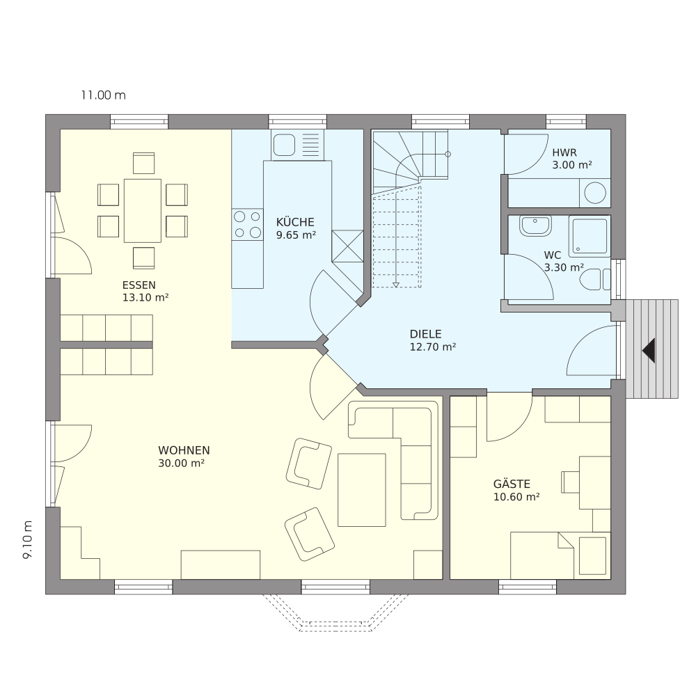 Schwedenhaus Flensburg Ansicht[accordion] [pane title=“Grundrisse“][/pane] [pane title=“Flächen“]Bebaute Fläche: Erdgeschoss 100,00 m² / Dachgeschoss 80,50 m²Wohn- und Nutzfläche: Erdgeschoss 82,40 m² / Dachgeschoss 58,40 m²Wohn- und Nutzfläche gesamt: 140,80 m²[/pane] [/accordion] Dieses Haus finden Sie in unserem Katalog auf Seite 63Die Fotos und Grundrisse verstehen sich als Vorschlag. Sonderausstattungen gehören nicht zum Basisangebot. Ihr Haus wird individuell nach Ihren Wünschen geplant und gebaut. Weitere Hausvorschläge finden Sie in unserem aktuellen Katalog »
