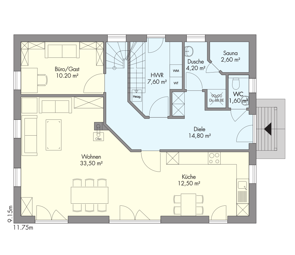 Langwedel[accordion] [pane title=“Grundrisse“][/pane] [pane title=“Flächen“]Bebaute Fläche: Erdgeschoss 107,50 m² / Dachgeschoss 107,50 m²Wohn- und Nutzfläche: Erdgeschoss 87,00 m² / Dachgeschoss 75,40 m²Gesamt Wohn- und Nutzfläche: 162,40 m²[/pane] [/accordion] Dieses Haus finden Sie in unserem Katalog auf Seite 71Die Fotos und Grundrisse verstehen sich als Vorschlag. Sonderausstattungen gehören nicht zum Basisangebot. Ihr Haus wird individuell nach Ihren Wünschen geplant und gebaut. Weitere Hausvorschläge finden Sie in unserem aktuellen Katalog »