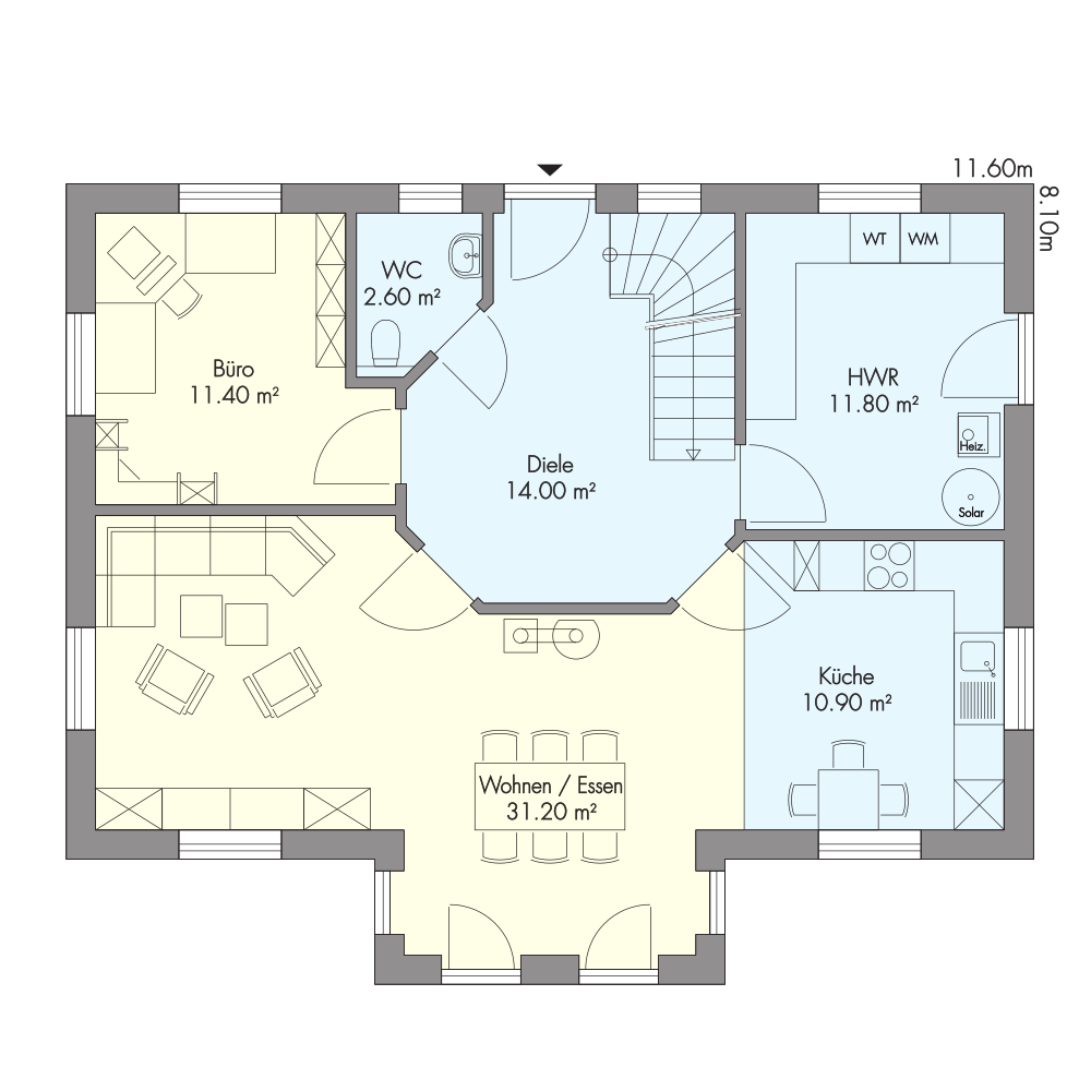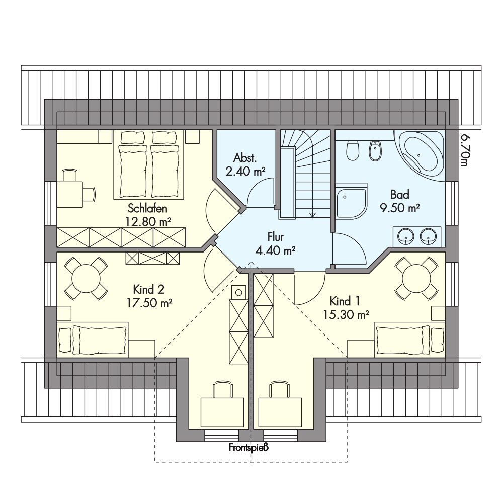Die Fotos und Grundrisse verstehen sich als Vorschlag. Sonderausstattungen gehören nicht zum Basisangebot. Ihr Haus wird individuell nach Ihren Wünschen geplant und gebaut. Weitere Hausvorschläge finden Sie in unserem aktuellen Katalog »
